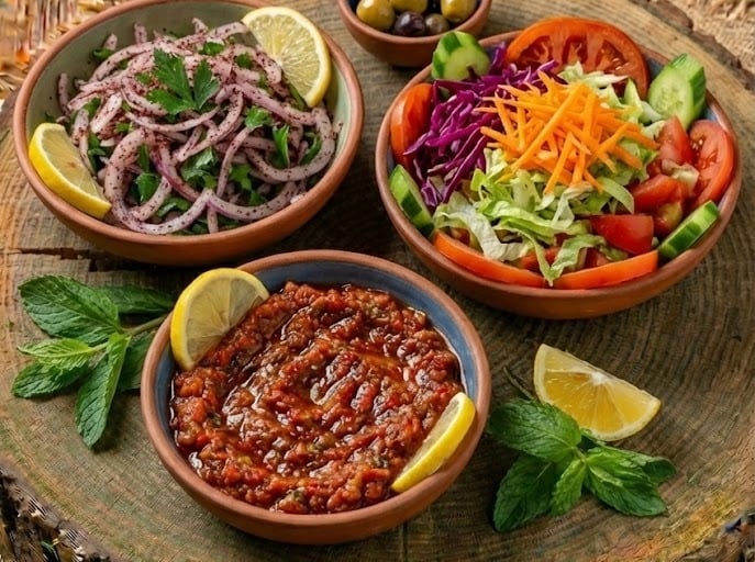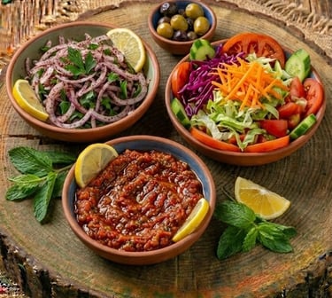 Mevsim salatamız, soğan salatamız, ve ezme salatamız anında hazırlanıp hep taptaze...